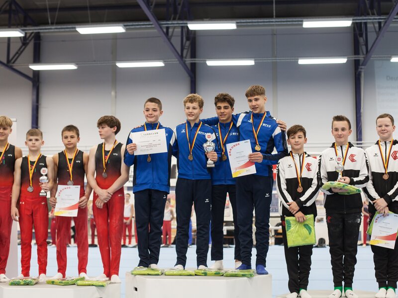 In der Altersklasse 13–14 gewann das Team des Bayerischen Turnverbands souverän die Mannschaftswertung mit 206,800 Punkten. Tim Berger turnte einen hervorragenden Mehrkampf und belegte Platz 2 in der Einzelwertung mit 70,120 Punkten. Makar Lypchanskyi folgte auf Rang 3 mit 66,750 Punkten. Maximilian Ernst (65,400 Punkte) und Ferdinand Schultz (65,050 Punkte) komplettierten das starke Team. Ein verdienter Mannschaftssieg für die bayerische Auswahl.
